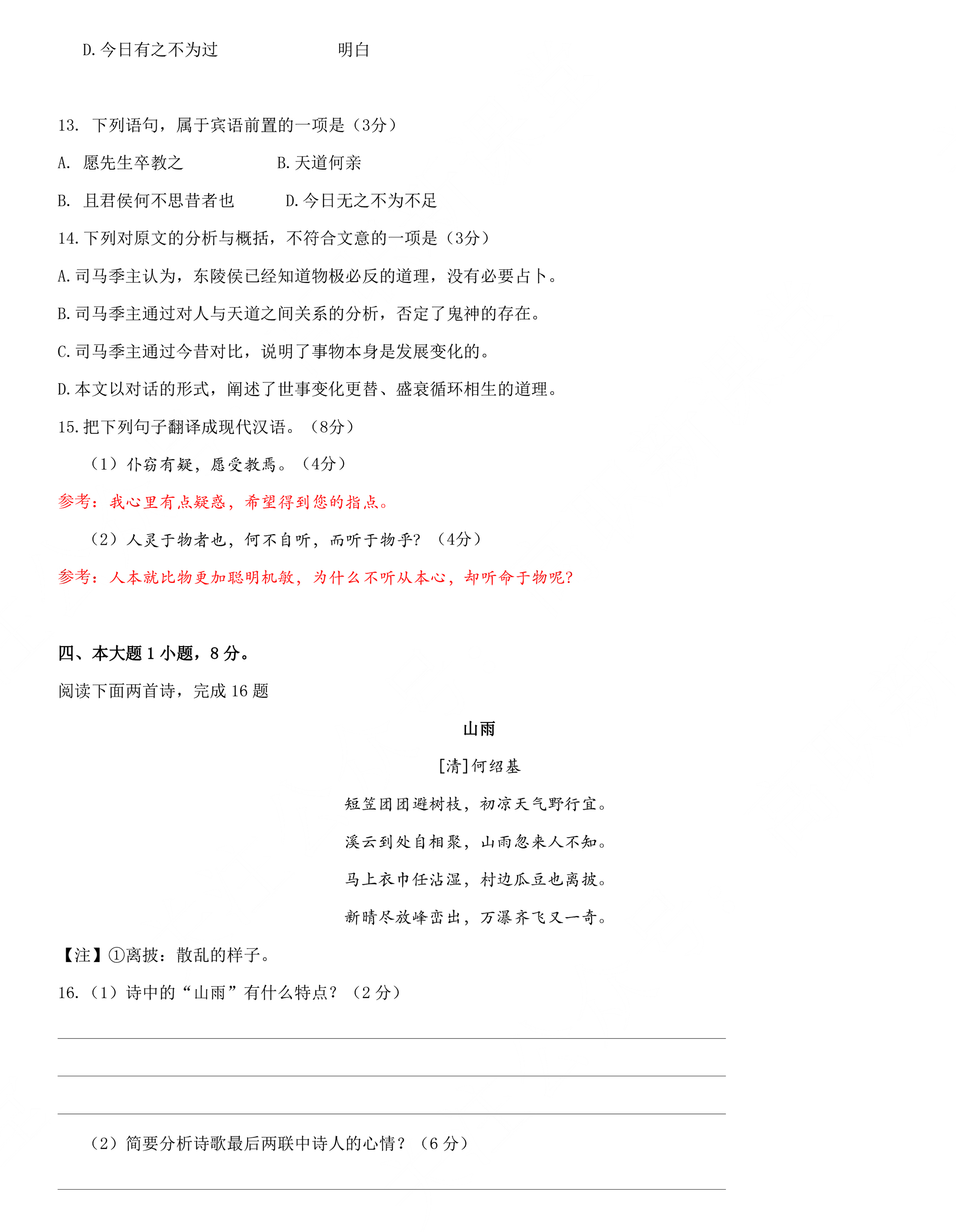 2022年广东省高职高考(3+证书)考试语文试题及答案解析
