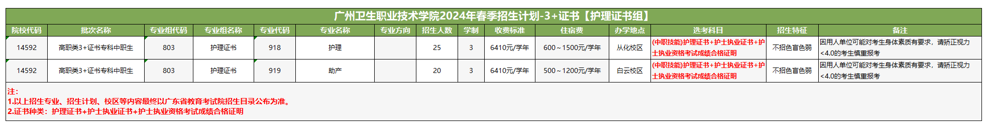 2024年广州卫生职业技术学院春季高考(3+证书)招生计划